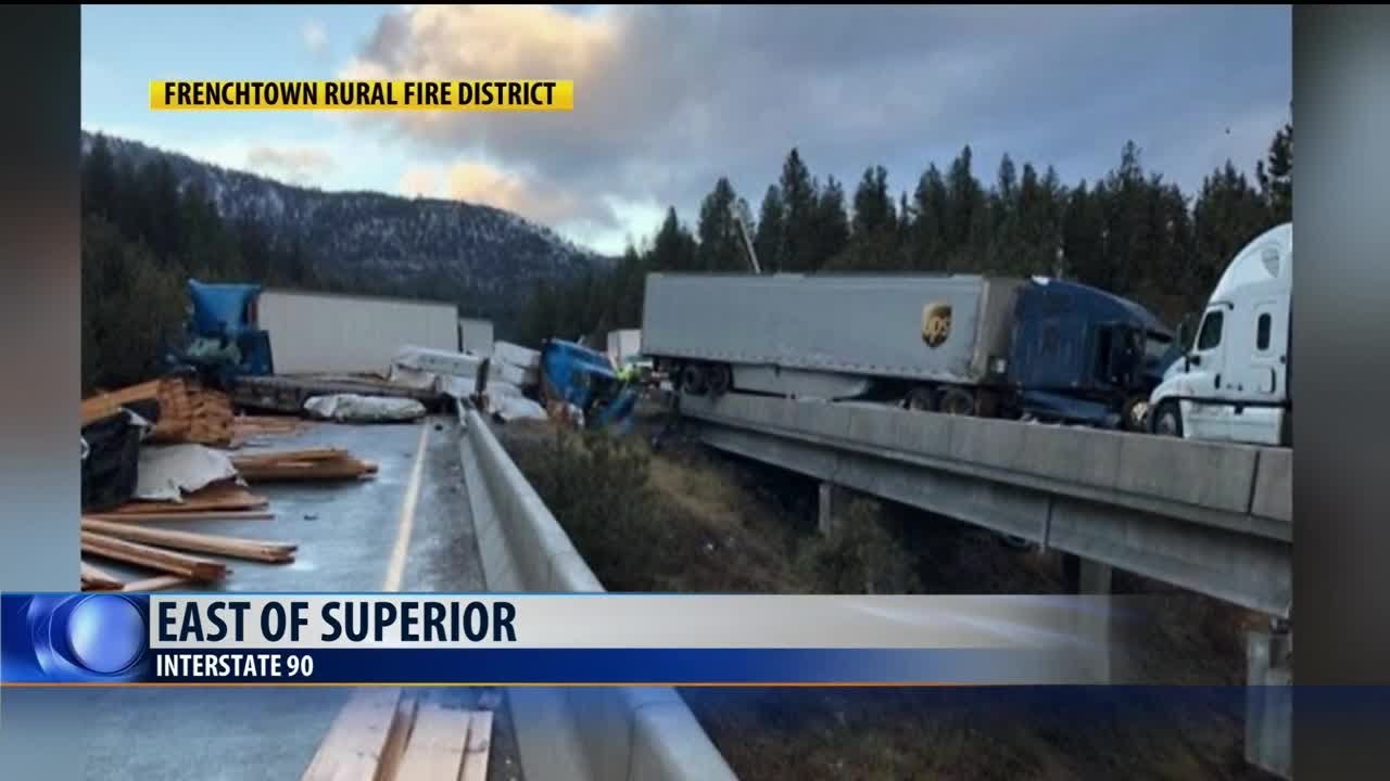 Two men died, one man was flown to Kalispell Regional Medical Center, and a firefighter was seriously injured after several semi trucks collided shortly after 5 a.m. near the Tarkio interchange.