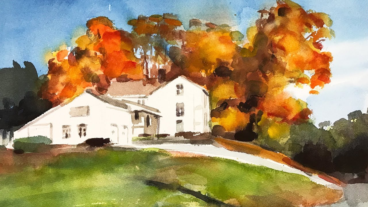 This is a watercolor painting of autumn in New England. There will be a lesson following with descriptions of perspectives. I hope that you will have fun with watercolor landscape painting and learn some perspectives this month.